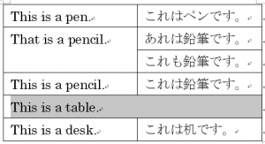 Wordで動く翻訳チェックソフト「色deチェック」では、2列の対訳表の結合セルを検索できます。