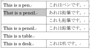 2列の対訳表で縦方向や横方向に結合したセルがある場合に特定し、そのセルにカーソルをジャンプさせます。