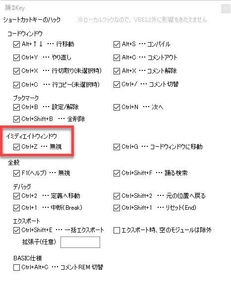 なんと「踊るVBE」には、イミディエイトウィンドウではCtrl+Zのショートカットキーを無効にするという粋なオプションが用意されているのです!