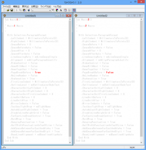 上記のように赤い矢印で示した項目1つをオンにする操作を記録すると、以下のような非常に長いコードが記録されてしまいます。