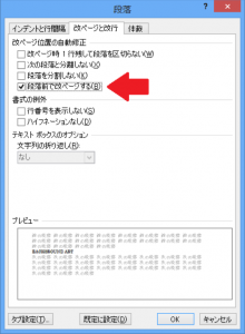 先ほどは、「段落前の改ページをする」をオンにしましたが、今度はこの同じ項目をオフにするのです。