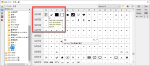外字エディターで登録されている文字を表示し、カーソルをあてると以下のように文字コードが表示されます。