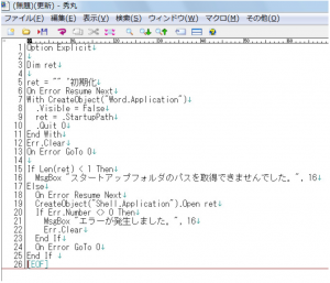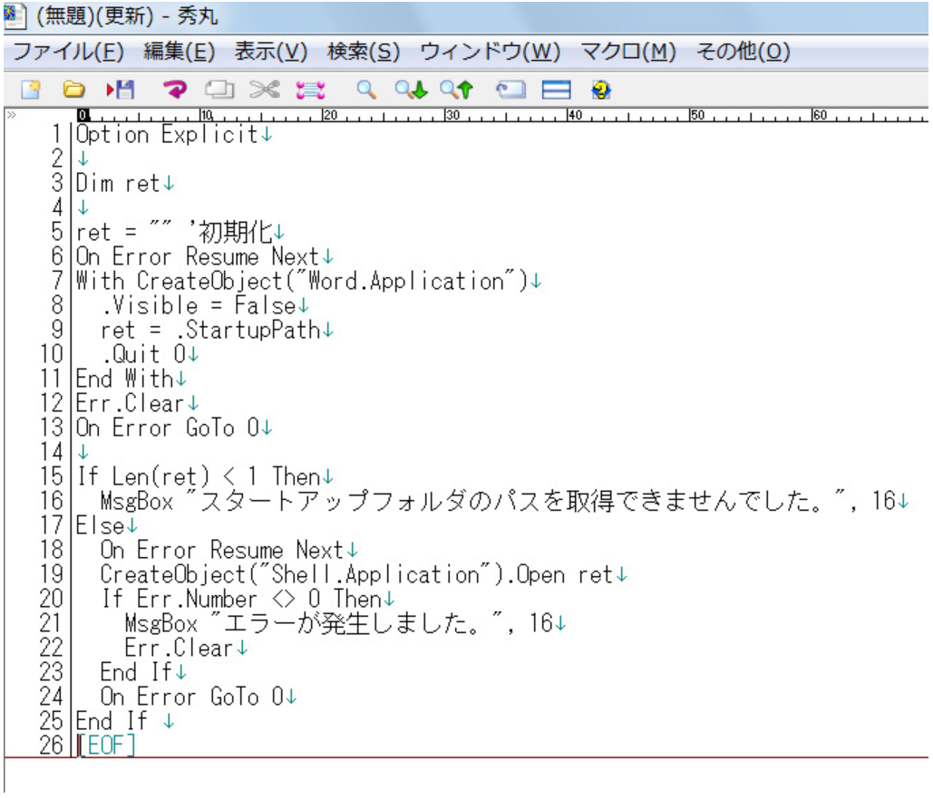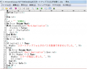 このスクリプトがあれば、テキストエディタ(メモ帳など)を使って簡単にスタートアップフォルダを表示させることができますね。