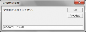 myString = InputBox("文字列を入れてください。", "Len関数の実験")