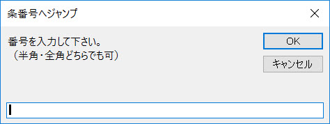 数字を入力すると、先頭から検索を開始して一番最初に見つかった「段落先頭に記載されている条番号」にカーソルを移動します。
