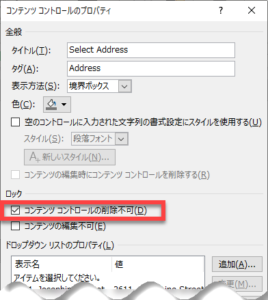 Sub コンテンツコントロールを削除可能にする() Dim CC As ContentControl For Each CC In ActiveDocument.ContentControls CC.LockContentControl = False Next End Sub