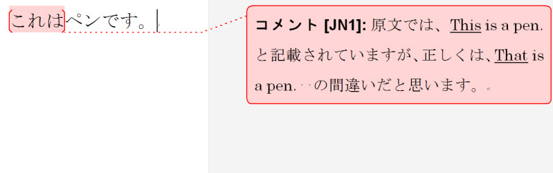 ただし、コメントの対象となる文字列やコメント中の文字列のテキスト情報のみを書き出すので、書式があった場合でも反映されません。