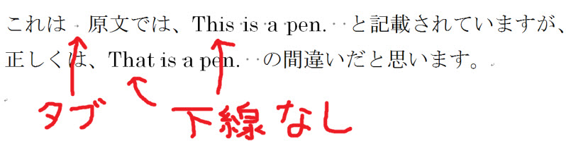以下のように、新しい文書が開かれて文字が書き出されます。下線が入っていません。