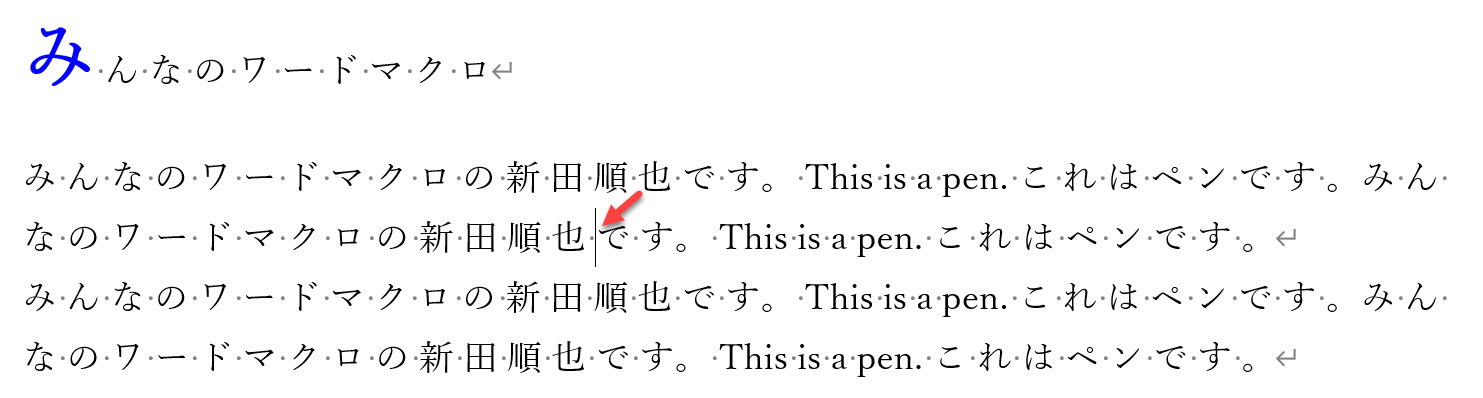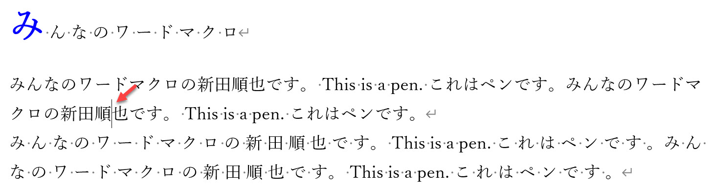 前回のマクロでは文書全体を処理対象にしましたが、今回のマクロではカーソルが置かれている段落を処理対象にします。