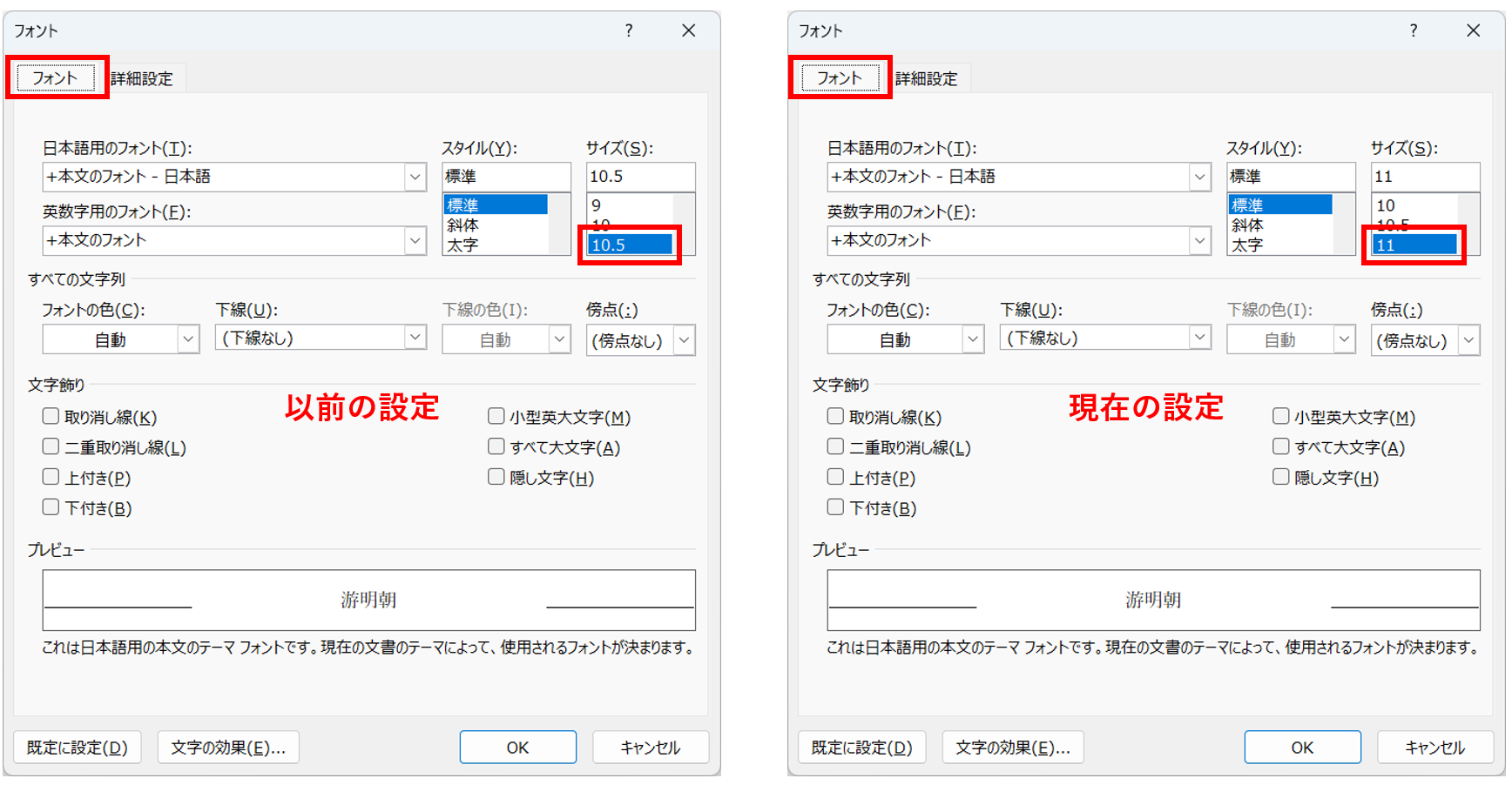 今年になってから、Word 365の標準スタイルのフォントサイズが11ポイントになってしまい、さらに段落書式が変更されて段落後にスペースが入るようになりました。左揃えになってしまっています。