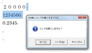 というわけで、1回1回確認しながらコンマを入れるマクロに変えてみました。