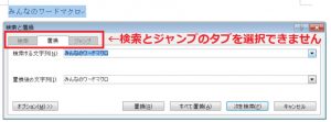 (1)の方法だと、「検索」と「ジャンプ」のタブをクリックして選択することができません。