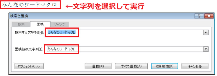 「検索と置換」ダイアログボックスに文字列を表示させる(その2)