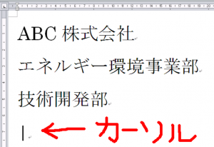 カーソル位置に3行の文字列を入力します。書式が含まれない文字情報だけの入力です。よって、カーソル位置の書式にそのまま従います。