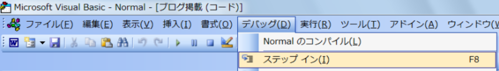 [F8] プログラムの実行(1行ずつ) → 「ステップイン」と呼ばれています。