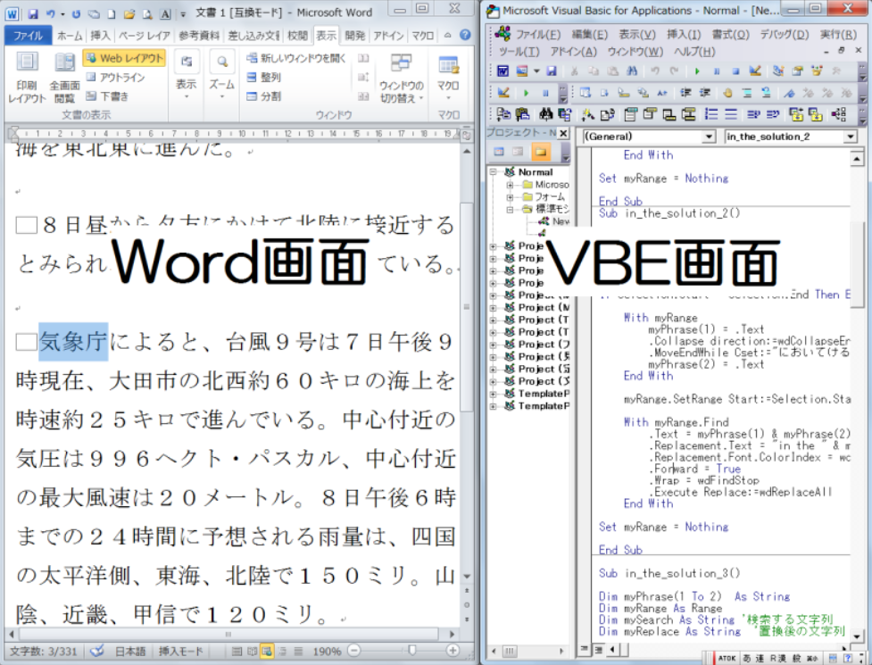 VBEでWordマクロの編集をする場合に、試運転をしますね。
