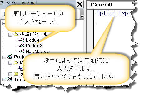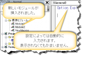 Module1まで作成されていたので、新しいモジュールはModule2となりました。