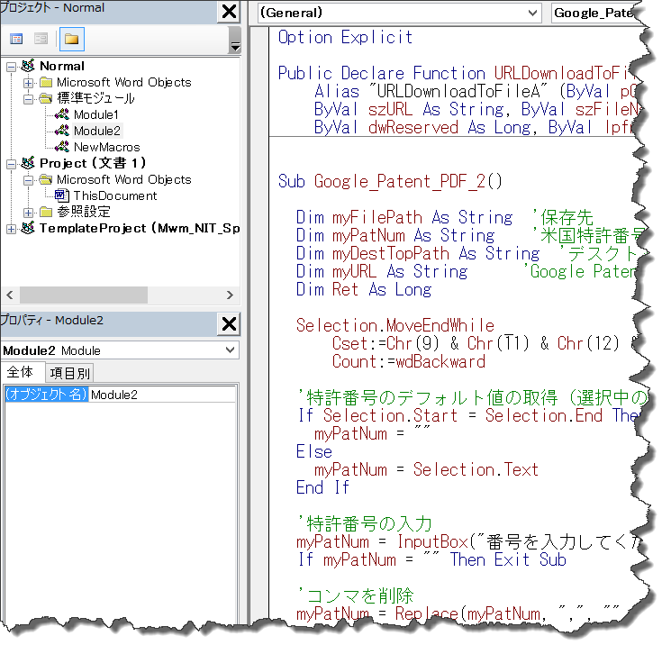 例えば、【コード】Google PatentからPDFを取得する(その2)のマクロを登録する場合に必要です。