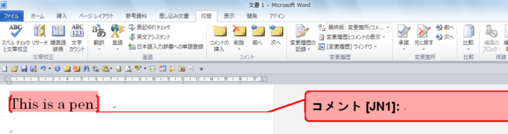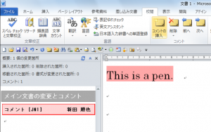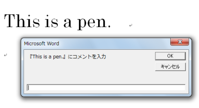 ここにコメントを入力すると、選択された文字列に対してコメントが書き込まれます。