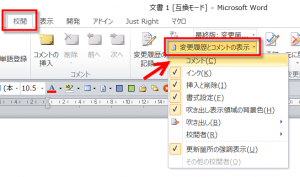 まずは、コメントを非表示にします。[校閲]タブの[変更履歴とコメントの表示]プルダウンメニューから、[コメント]のチェックマークをオフにします。