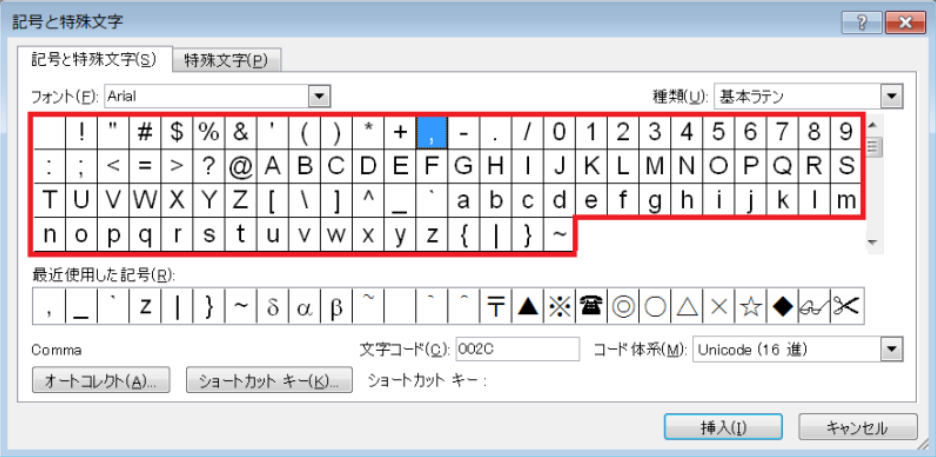 '半角英数字記号を探します。