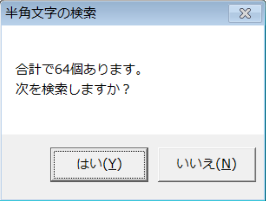 & "次を検索しますか?", vbYesNo, "半角文字の検索")