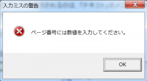 MsgBox "ページ番号には数値を入力してください。", vbCritical, "入力ミスの警告"