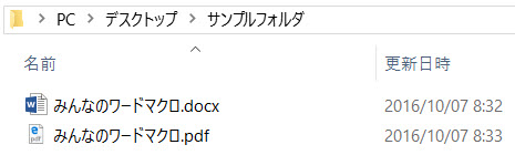 同じフォルダ内に、同じファイル名でPDF形式でファイルが保存されます。