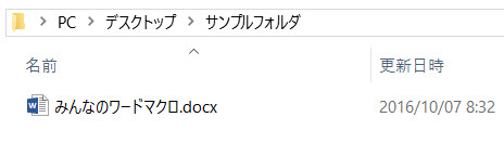 みんなのワードマクロ.docxを開いた状態で、Wordでマクロを実行します。