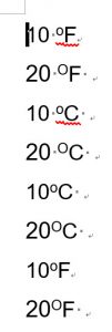 数字とDegree Signの間の半角スペースはそのまま残しました。