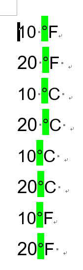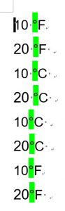 数字の直後に華氏と摂氏の記号がある場合です。