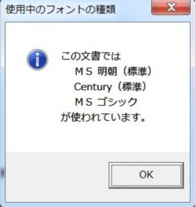 しかし、文書中に使用されている(表示されている)フォントが使用中のフォントとして認識されてませんでした。
