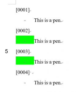 タブが設定されて、明るい緑色の蛍光ペンで着色されました。文書全体で処理された箇所がわかるので、蛍光ペンを頼りにして見直しができます。