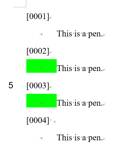 挿入したタブ(または全角スペース)箇所を明るい緑の蛍光ペンで着色します。