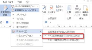 以下のように、[すべての変更履歴を本文中に表示]をオンにしています。
