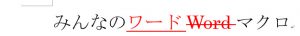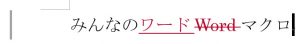 すると、以下のように挿入箇所と削除箇所が表示されます。「Word」の文字を削除して「ワード」に書き換えました。
