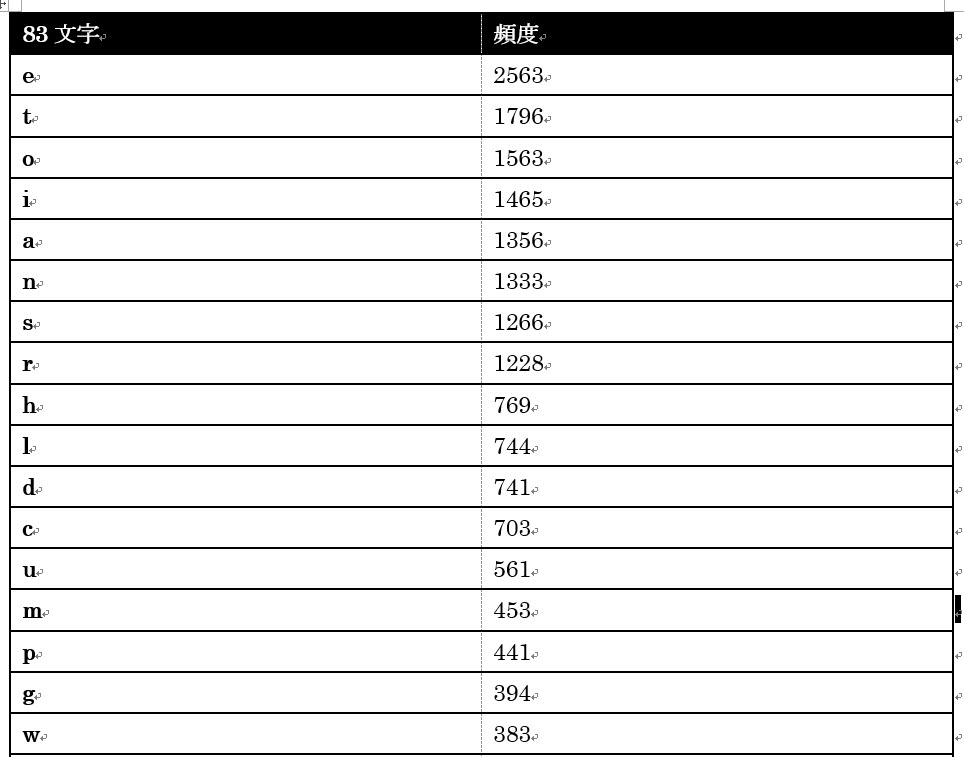 ワード文書の本文(メイン文書)に書かれている1文字ごとに使用頻度を計算します。