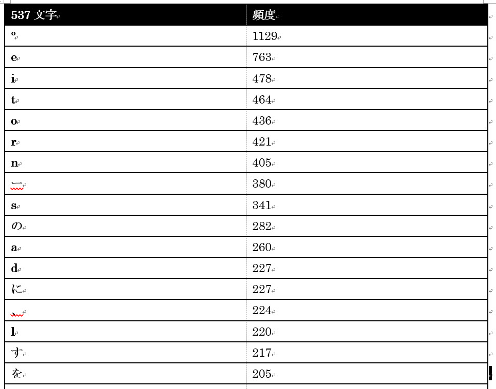編集記号の頻度計算は除外していますが、若干残っています。あくまでもサンプルマクロなので適宜変更してご利用ください。