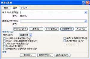 ときどき、「置換後の文字列」欄に以前もちいた不要な文字列が記載されているために、マクロをうまく実行できないことがあります(ワイルドカードを使用する場合です。詳細は省略)。