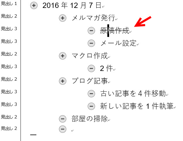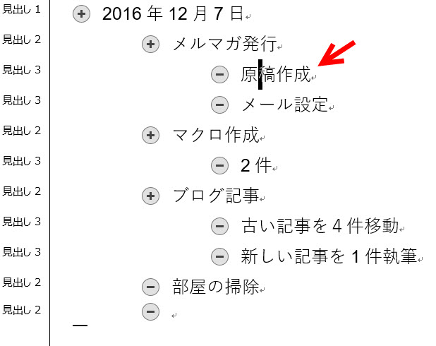 最近は、一日のToDoリストもアウトライナーで作っております。