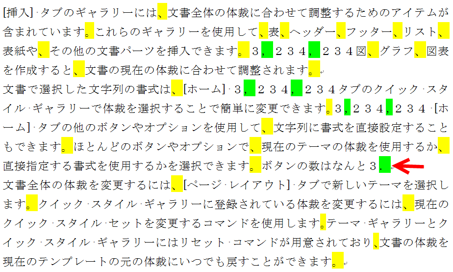 さっそく作ってみました。処理条件がまだ甘いかもしれませんが、残ってしまったコンマとピリオドを着色することで処理の漏れを確認できる仕組みにしてみました。