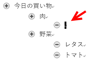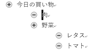 このときに、1段階下位のアウトラインレベルに設定して項目を挿入します。以下のように階層構造ができて整理しやすくなります。