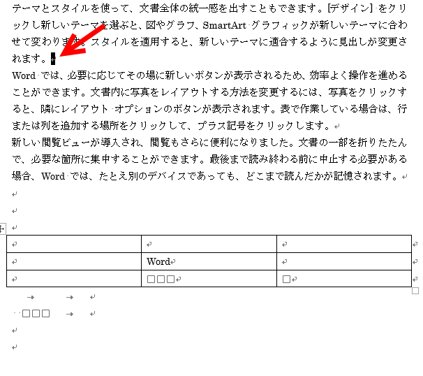 なので、内容を確認するためにその段落にカーソルを移動します。