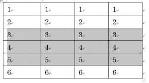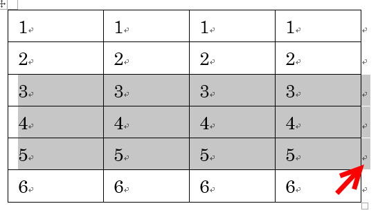 カーソルのある表(選択されている表)の3行目から5行目までを選択します。