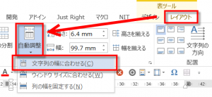 手作業で調整するには、以下のように[表ツール]の[自動調整]ボタンの[文字列の幅に合わせる]を選択すればできます。