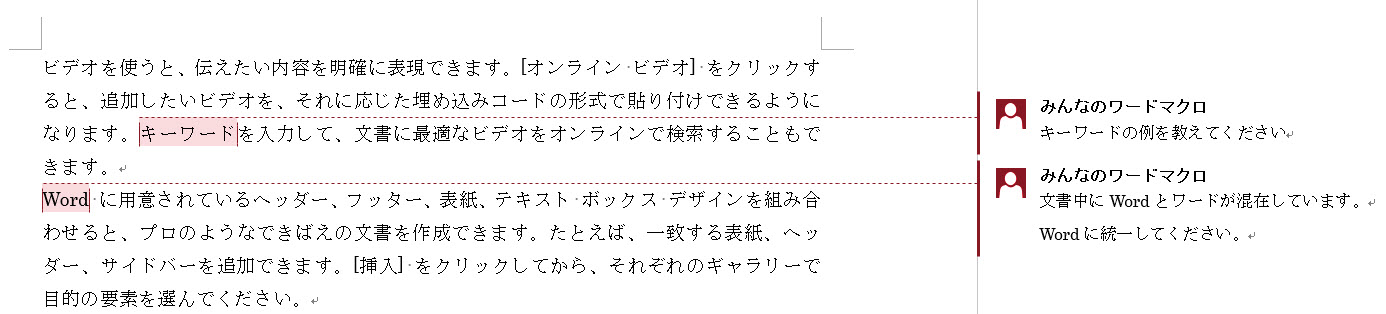 コメントの挿入者が「みんなのワードマクロ」に変わりました。