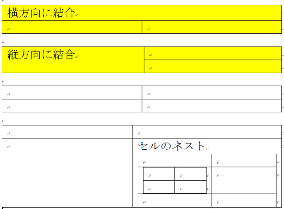 Sub 表のセルが分割か結合されている場合にマーキングする() Dim myTable As Table For Each myTable In ActiveDocument.Tables If myTable.Uniform = False Then myTable.Shading.BackgroundPatternColorIndex = wdYellow End If Next End Sub