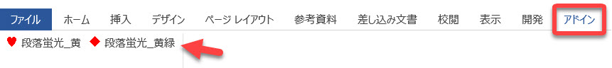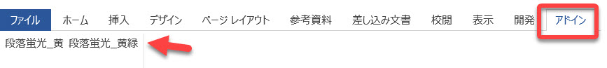 Word 2007 以降は、リボンの[アドイン]タブに以下のようなボタンを作成できます。