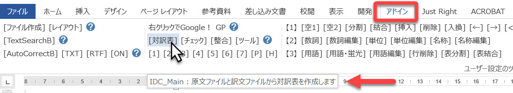 先日のWordマクロセミナー(超入門編)の参加者から、[アドイン]タブにボタン作成してここから実行する方法についての質問をいただきました。
