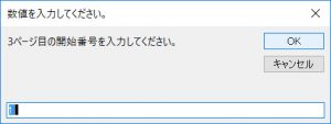 まず、ページ番号の挿入を開始したいページ番号を入力します。